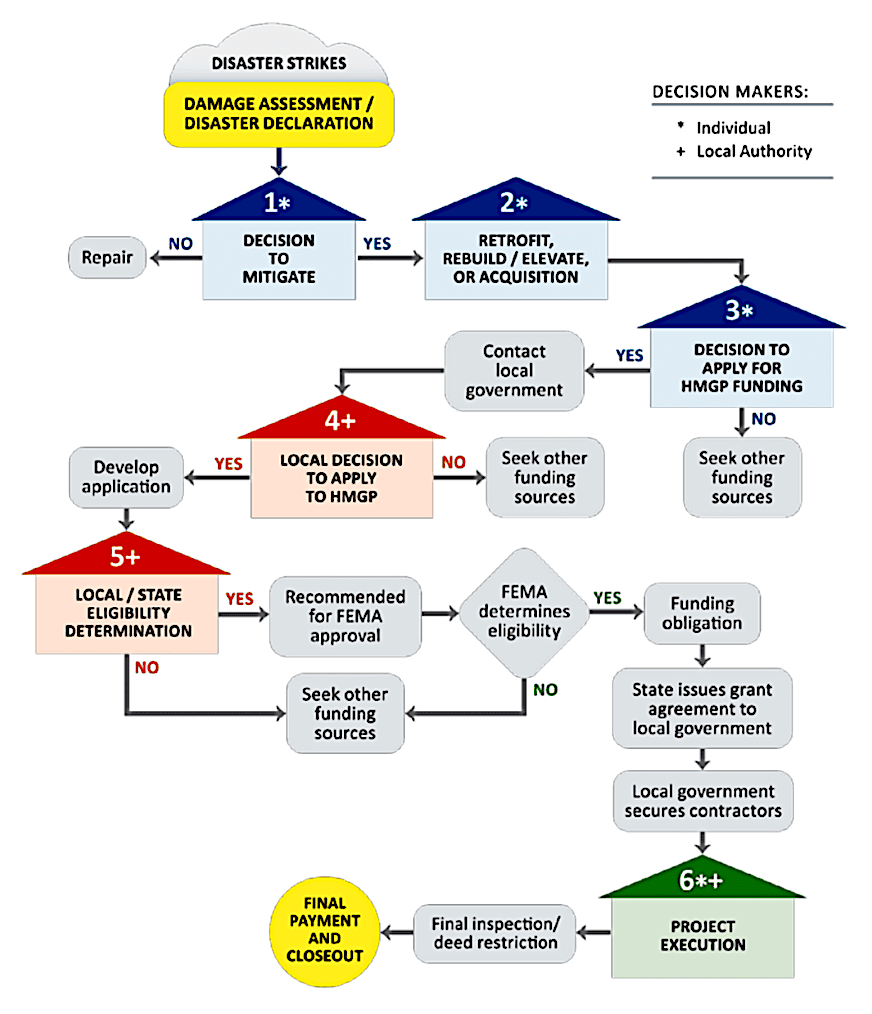 Homeowners can contact local officials to request Hazard Mitigation Grant Program (HMGP) funds for qualified projects. Contact your state or local emergency management or building department to find an HMGP point of contact to gain more information about eligibility.